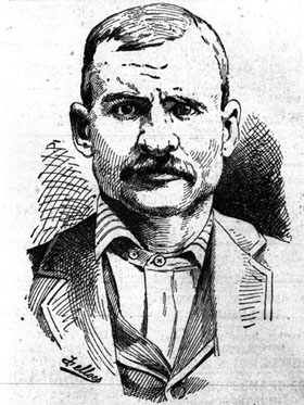 Notorious shanghai artist Joseph "Bunco" Kelly, as drawn by the Portland Evening Telegram's staff artist during his trial for murder in 1894. (Image: Portland Evening Telegram)